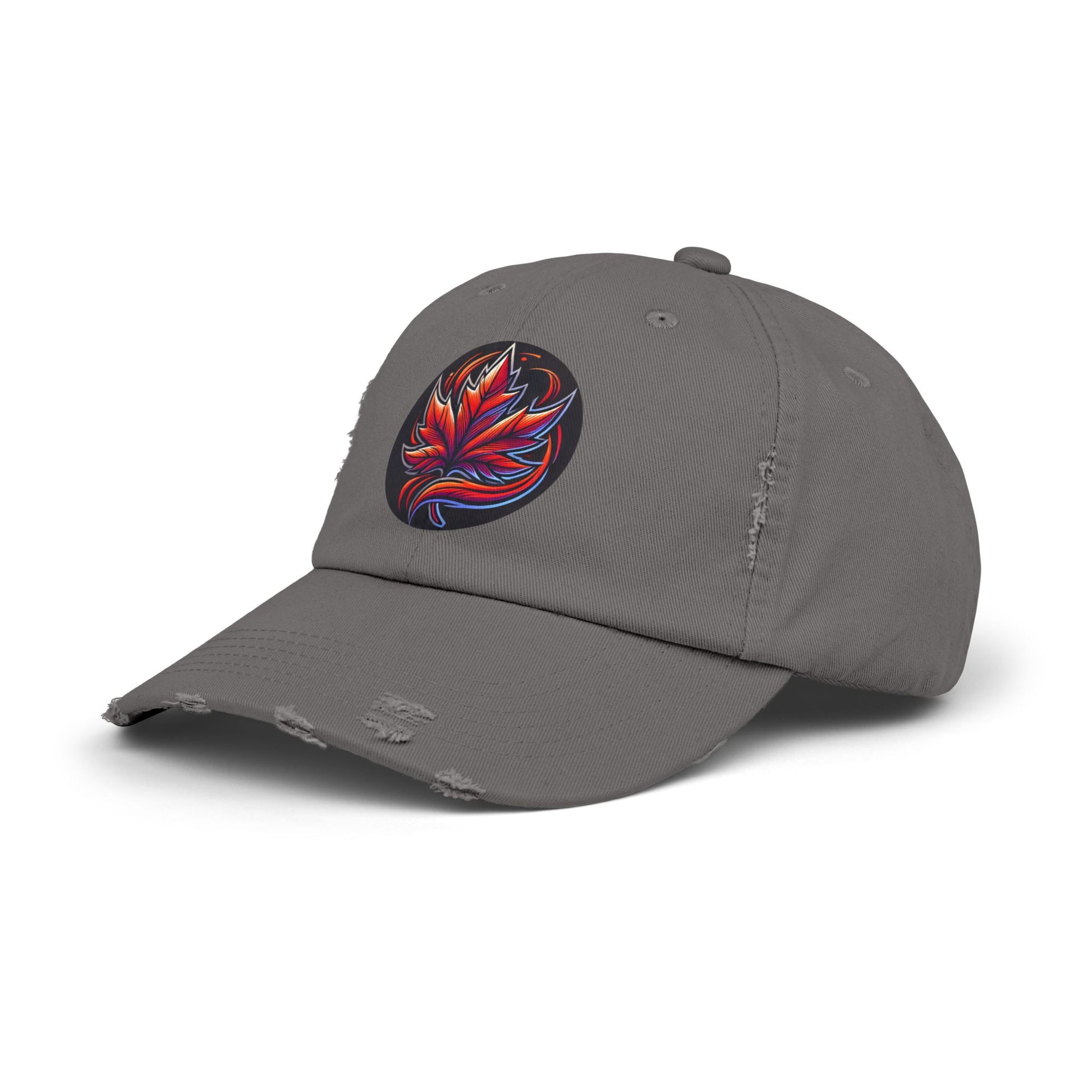 Elevate your casual style with this trendy distressed cap, featuring a vibrant, artistic Canadian maple leaf emblem that exudes bold energy. The cap’s worn-in, vintage look adds character, while the rich red hue makes a striking fashion statement. Made with 100% cotton twill for high-end comfort and durability, it ensures comfort and versatility—perfect for everyday wear, outdoor adventures, or adding a pop of color to your streetwear look.