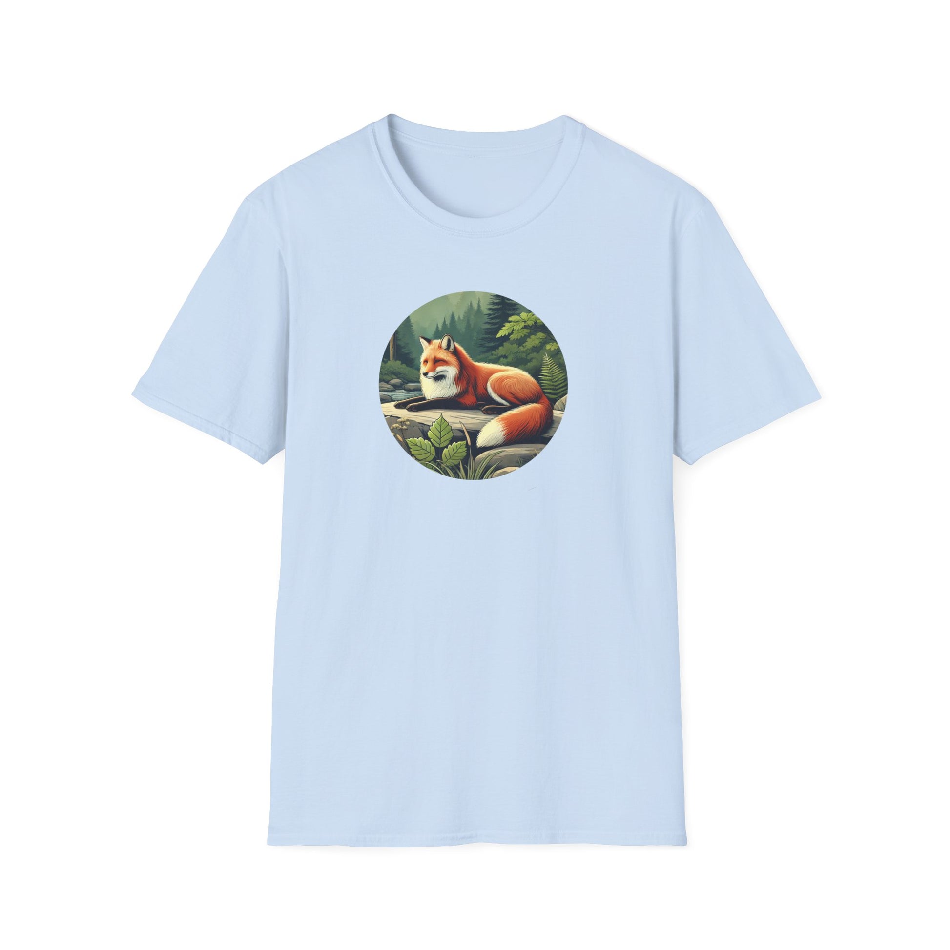 Crafted from soft, breathable cotton, this tee offers a comfortable fit that’s perfect for any casual occasion. The shirt features a beautifully illustrated fox, resting peacefully amidst a lush forest backdrop, bringing a touch of wilderness to your wardrobe. The detailed artwork captures the essence of the great outdoors, making it an ideal choice for nature lovers and wildlife enthusiasts alike. Whether you're heading out for a hike or just enjoying a relaxed day, this t-shirt pairs effortlessly with your favorite jeans or shorts, adding a unique, artistic flair to your outfit. Elevate your casual style with a piece that reflects your love for nature and the tranquility it brings.