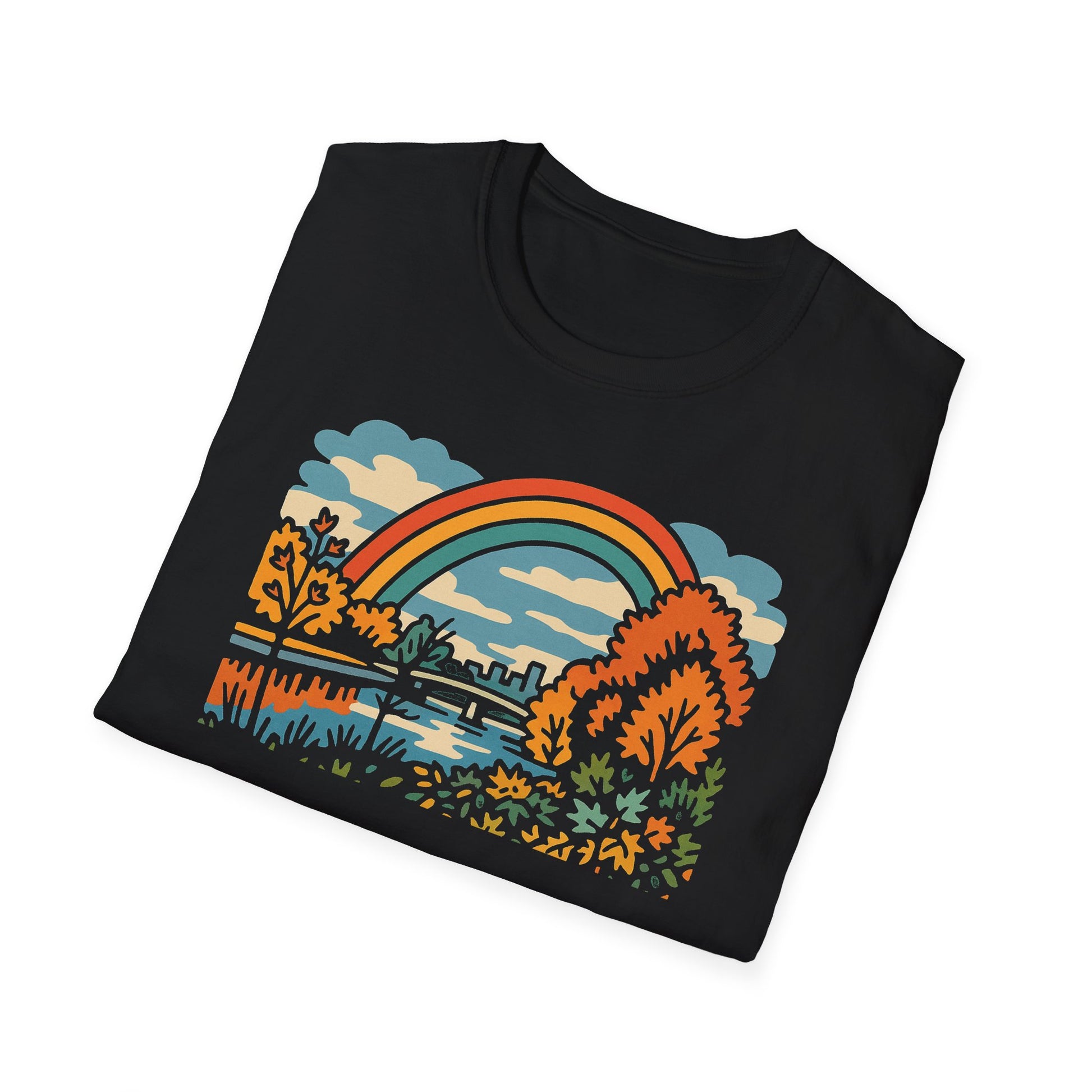 Step into serenity with Nature’s Harmony, featuring a vibrant design that blends the beauty of lush foliage, a radiant rainbow, and calm waters beneath a colorful sky. This tee is perfect for dreamers, adventurers, and anyone who loves carrying a piece of nature’s wonder wherever they go. The bold colors stand out brilliantly, making this shirt a unique blend of style and expression. Whether you're celebrating springtime, attending a casual gathering, or simply brightening up your wardrobe, this t-shirt fits seamlessly into your life. It's a thoughtful gift for birthdays, earth day, or any celebration that appreciates nature and creativity.