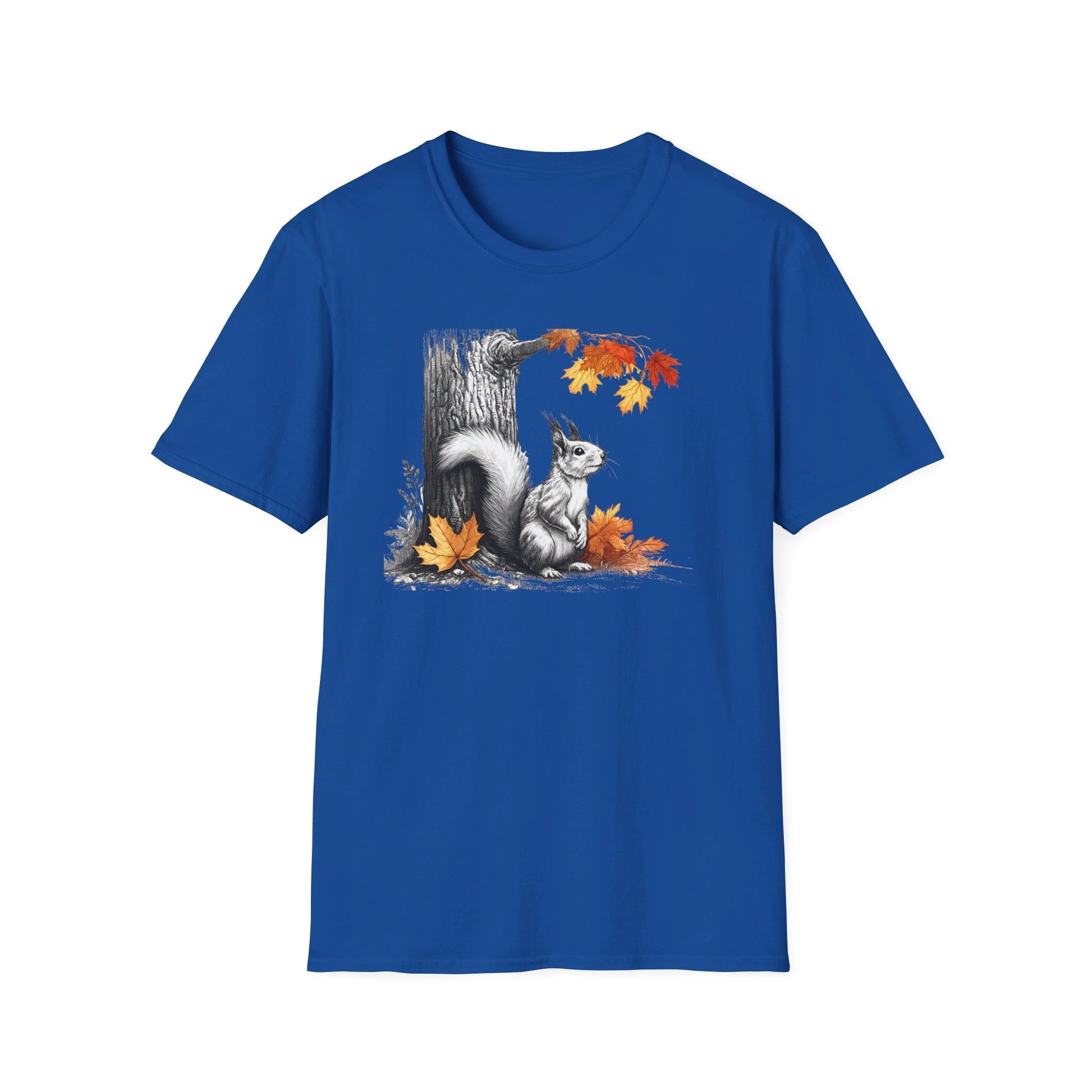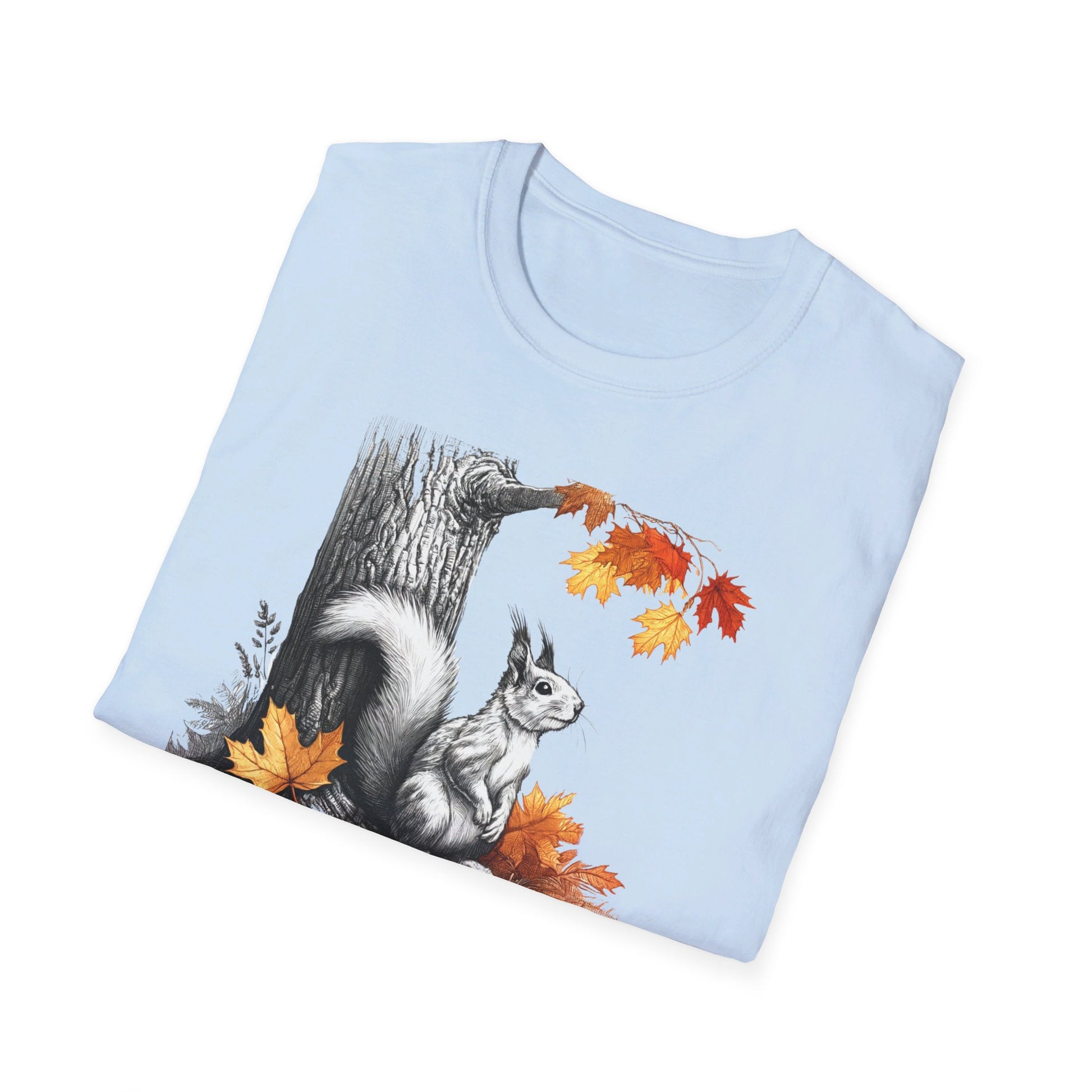 Embrace the enchanting spirit of fall with our "Squirrel...!" tee. This beautifully crafted design depicts a playful squirrel amidst a scenic backdrop of crisp autumn leaves and a timeless oak tree. The design evokes the cozy, gentle mood of the season. Ideal for autumn enthusiasts and wildlife lovers, this shirt is a splendid addition to any wardrobe, perfect for casual strolls through the park or sipping a warm drink on a cool, leaf-strewn day.