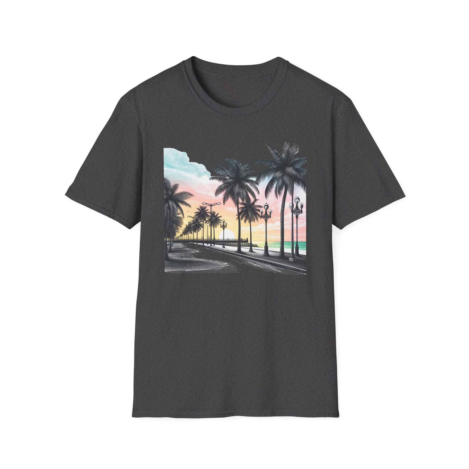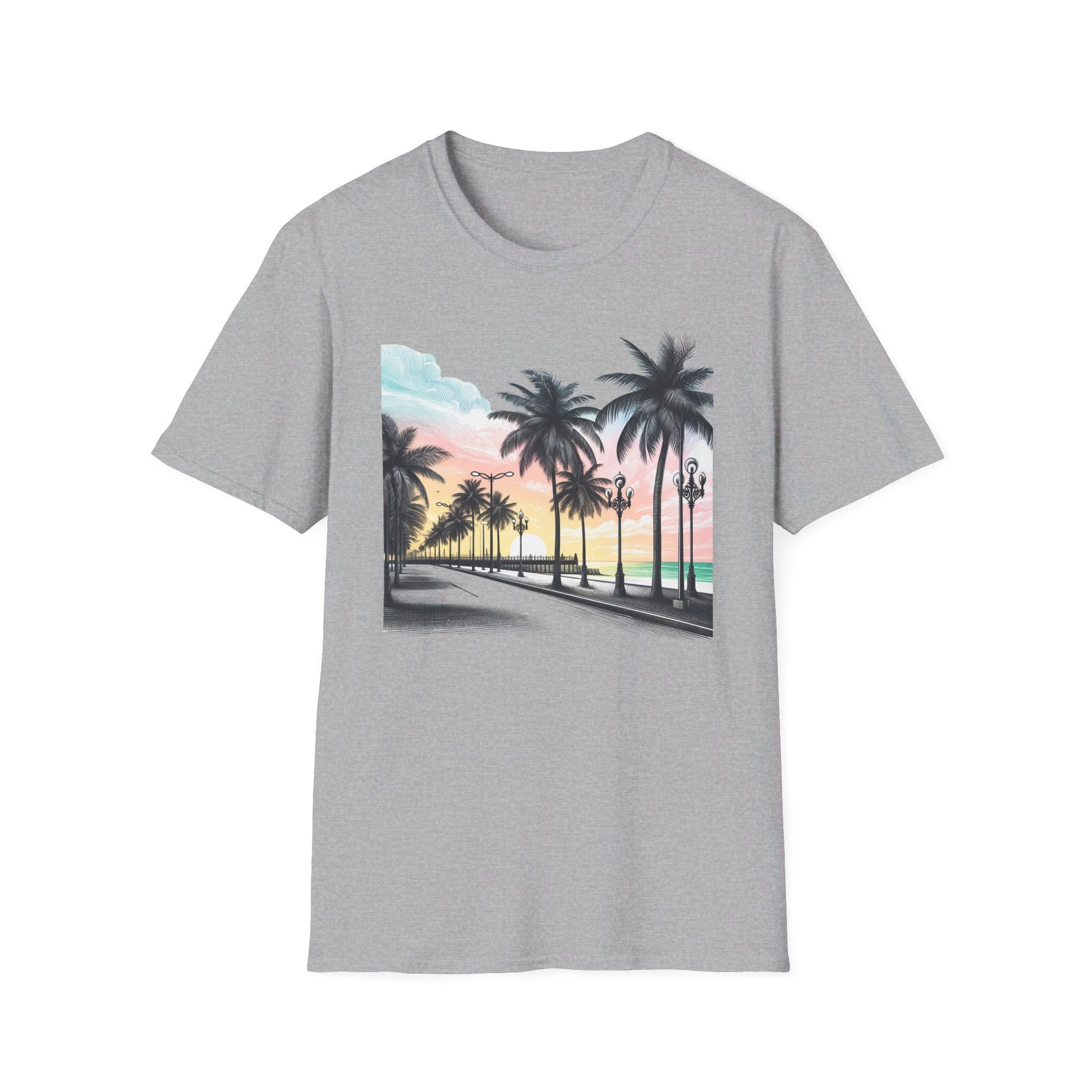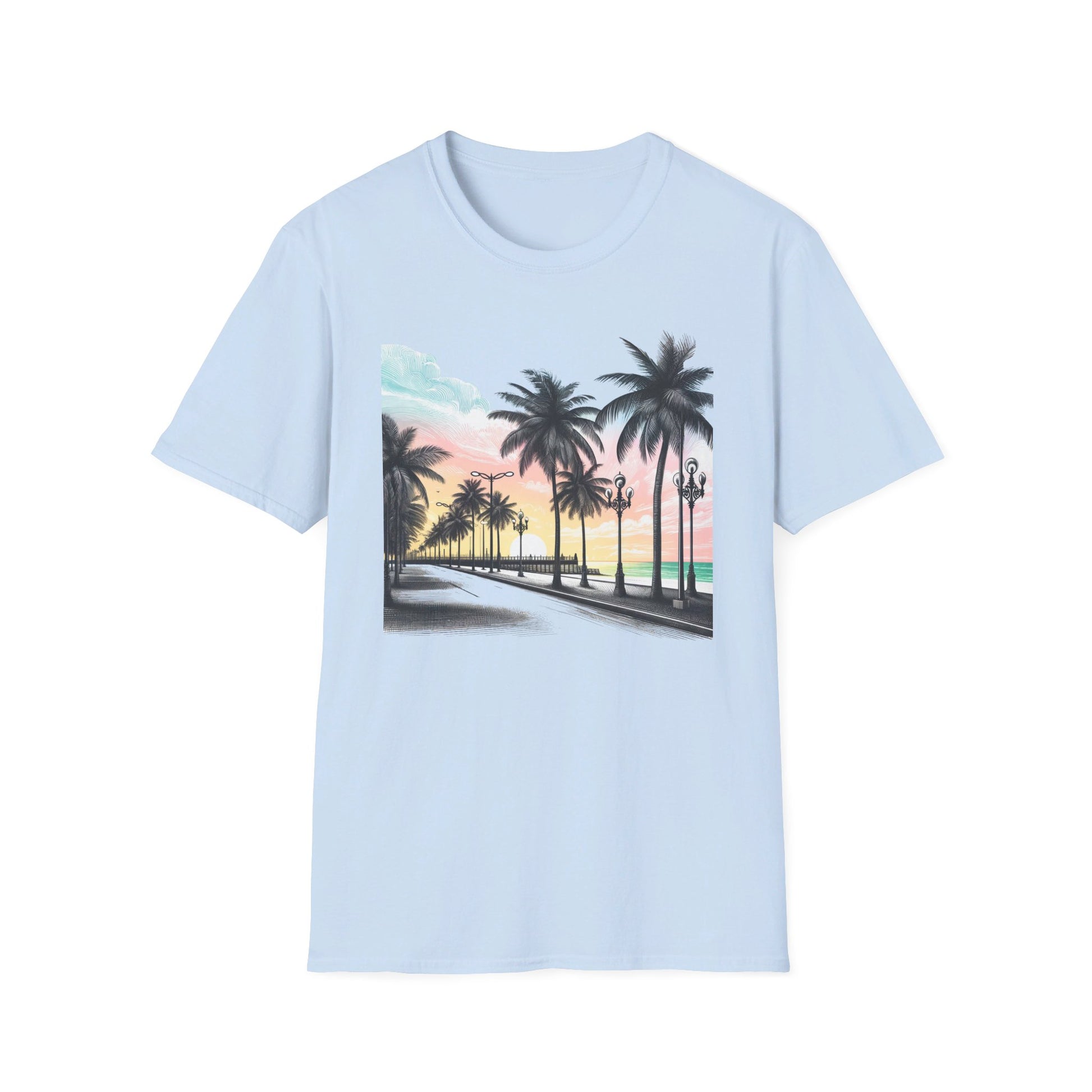 Drift away to a tropical paradise with our "Life's a Beach" T-shirt. This design features a breathtaking view of a beachside boulevard lined with swaying palm trees against a backdrop of a stunning sunrise. The soft fabric enhances the vibrant colors of the artwork, making it a perfect wear for beach outings, vacation vibes, or simply daydreaming about your next coastal escape. Whether you’re hitting the sands or just bringing a bit of the beach to your everyday life, this shirt is your passport to chill.